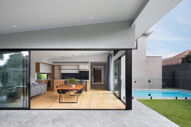 An extremely modern home hidden in plain sight in the suburbs of Highett, this house both fits in with the rest of the street while making an impact in ways that become more apparent the further you come off the street.